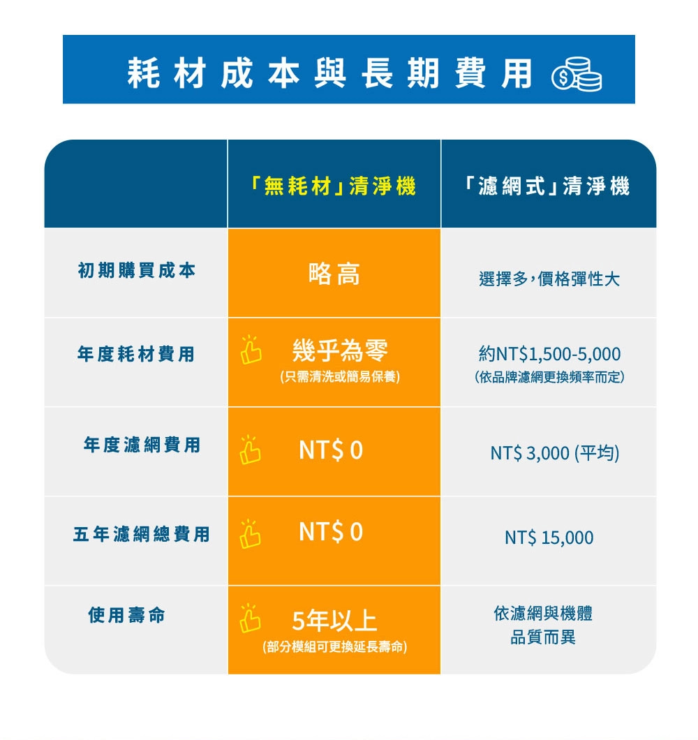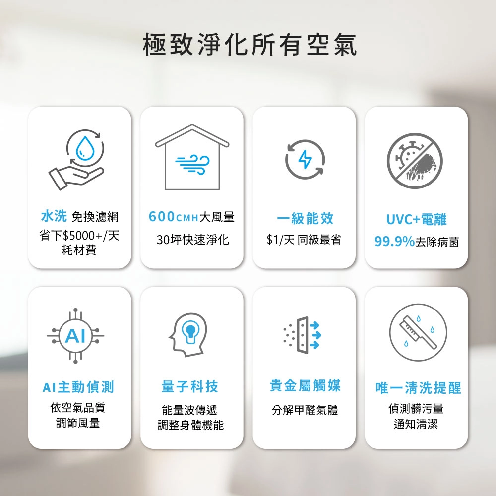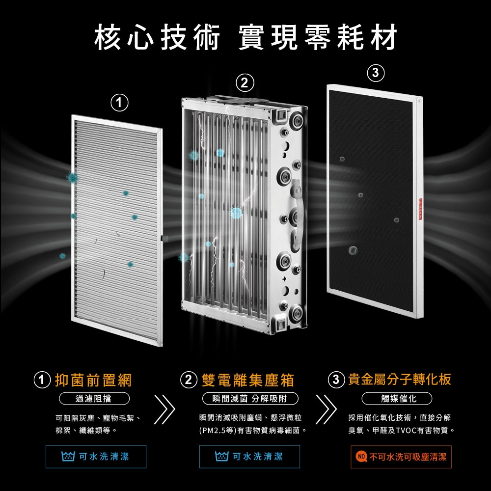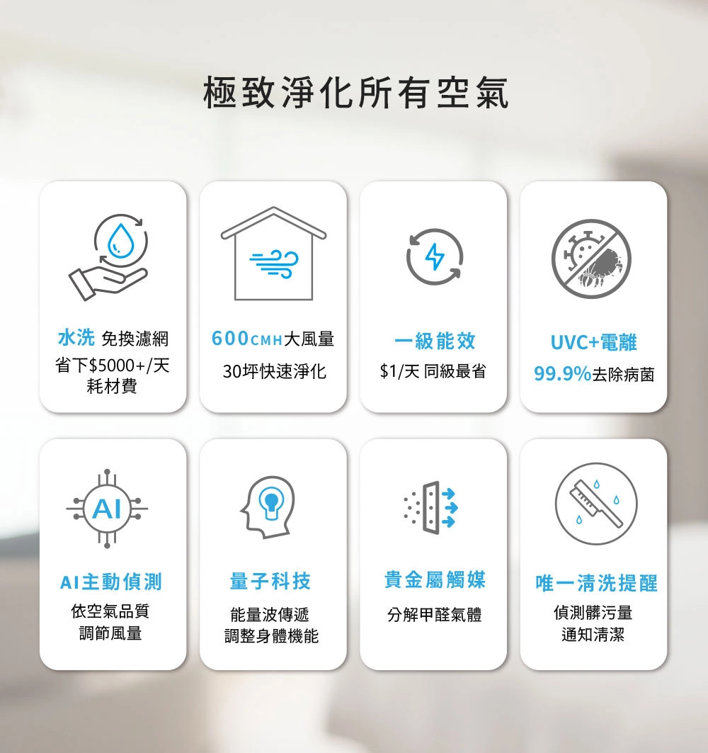 一台無須更換濾網,水洗快乾重複利用獨家!即時髒污偵測技術,給你好空氣環繞生活!