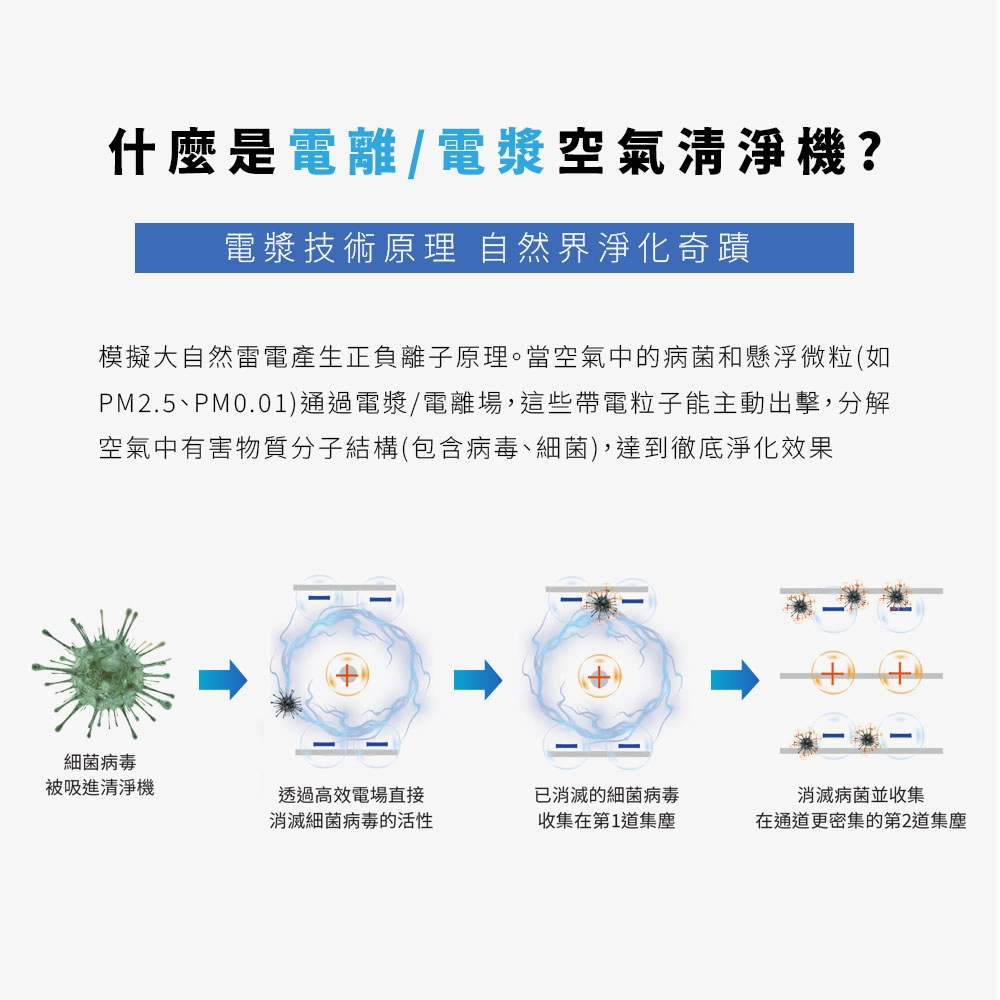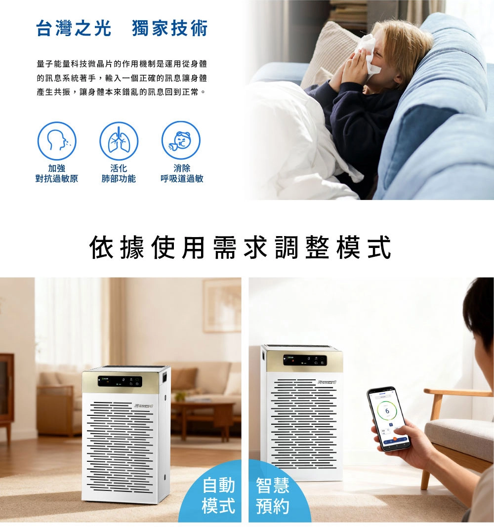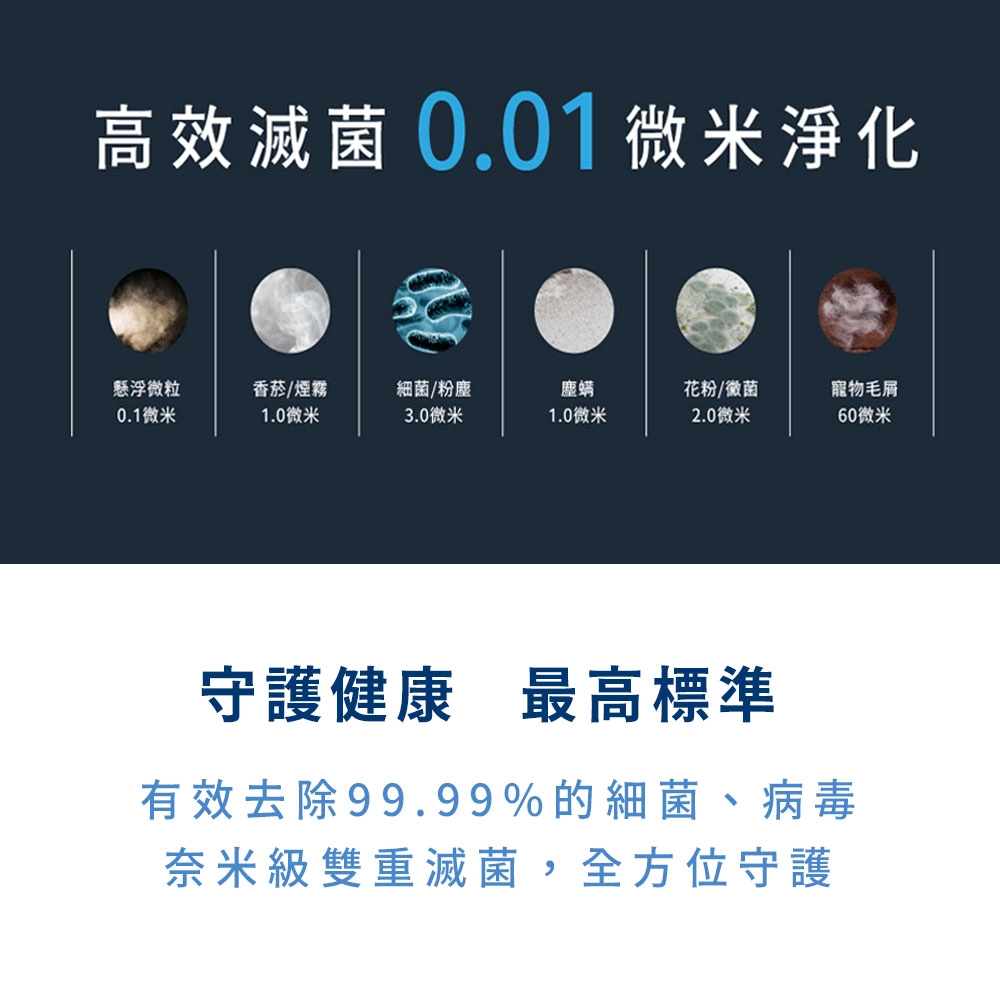 - 雙重過濾︱雙電離技術+UVC LED,過敏剋星,強效滅絕99.9%病毒