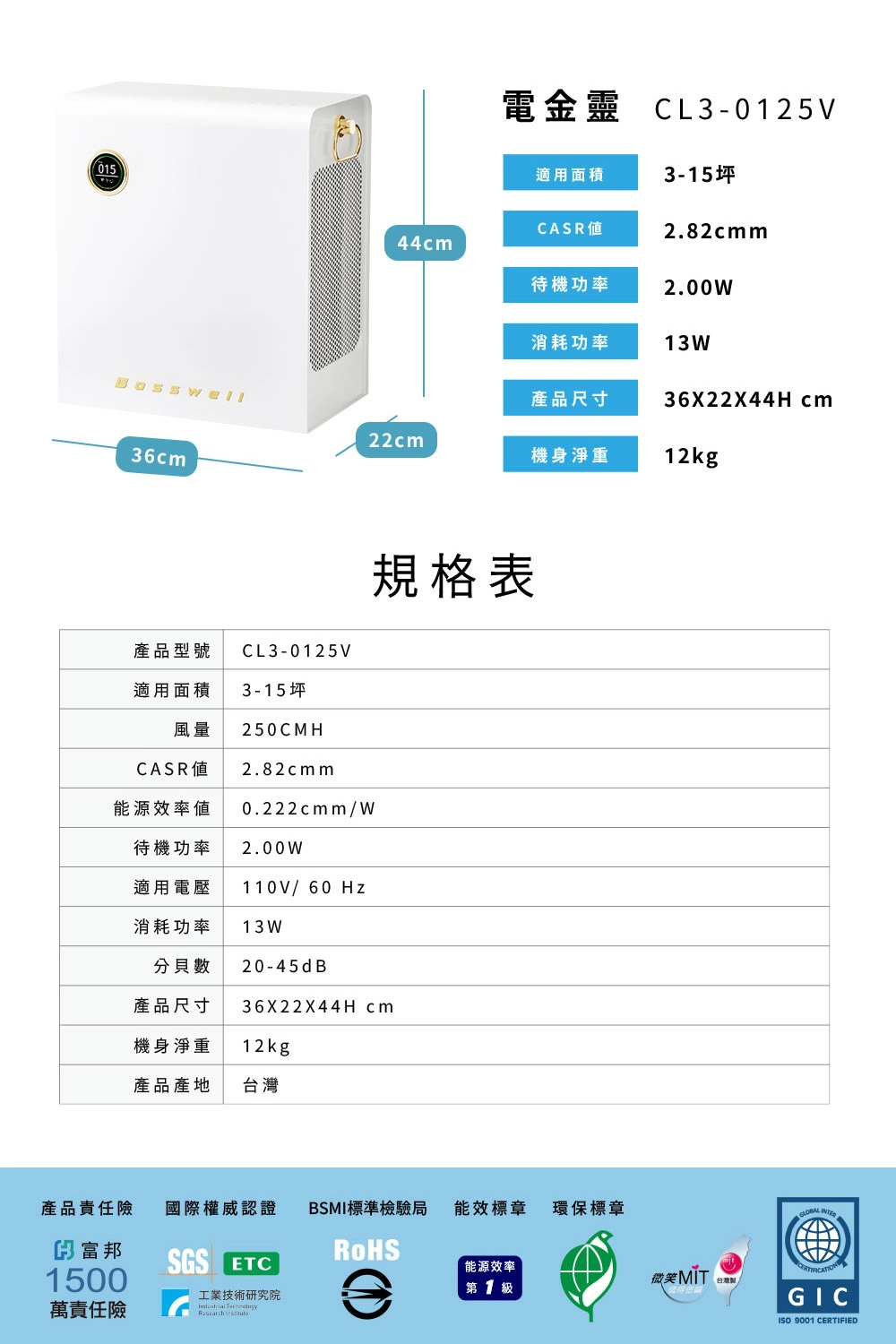Breo Air 電金靈 零耗材全滅菌清淨機 CL3-0125V /智能升級 揮發性有機物(VOC)+PM2.5雙感測器