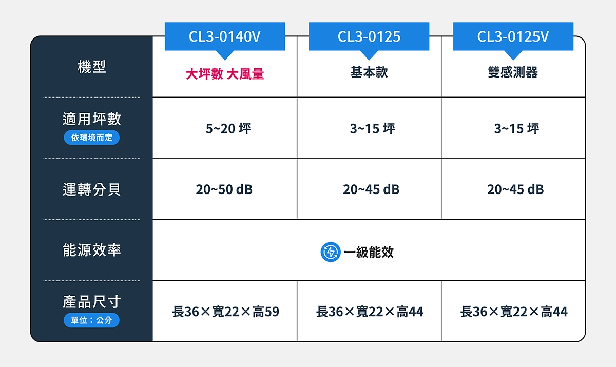 - 風量升級60% 大坪數淨化更快速
