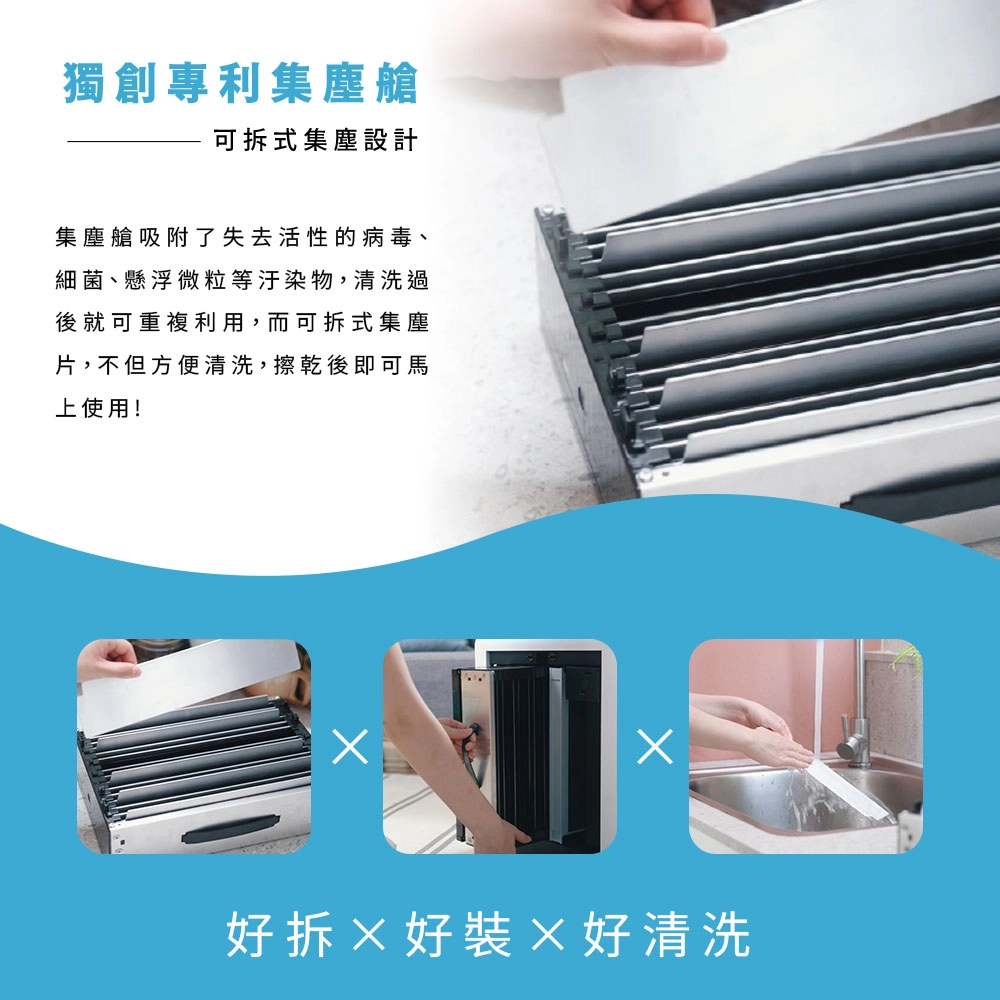 - 升級VOC(揮發性有機物)+PM2.5雙感測器,偵測空氣中污染氣體